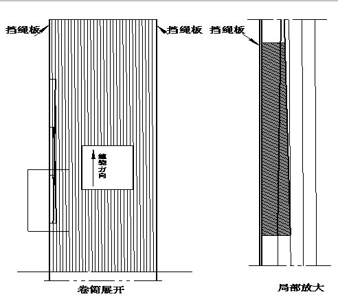 安裝步驟:在有負荷的狀態下將罐籠提升至提升機鋼絲繩距離擋繩板1.5-2圈時,將寫有1#字樣的過渡塊進行試裝(2m以上提升機過渡塊可從2#開始試裝),按其鋼絲繩與擋繩板間隙的位置盡可能的向前(見圖2所示),做好標記1#,繼續提升卷筒,將2#、3#……過渡塊依次放入試裝,繼續提升卷筒觀察鋼絲繩的運行過渡情況并進行調整。